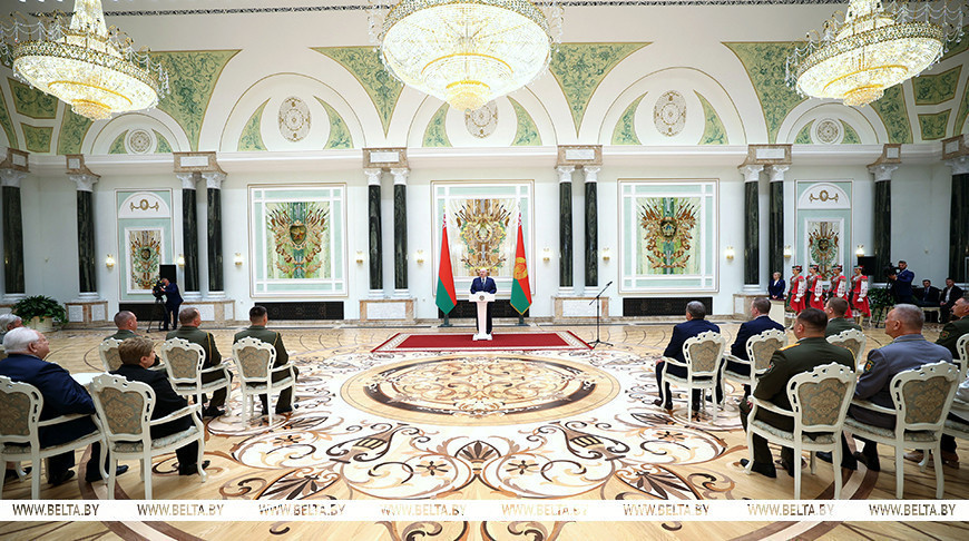 Александр Лукашенко отметил, что эстафета поколений символично продолжается, когда в торжественной обстановке получают заслуженные государственные награды работники промышленности, строители, труженики села, военные, правоохранители, деятели культуры, спортсмены — все труженики, которые каждый день созидают жизнь в стране. Таким образом укрепляется связь времен и единство людей.