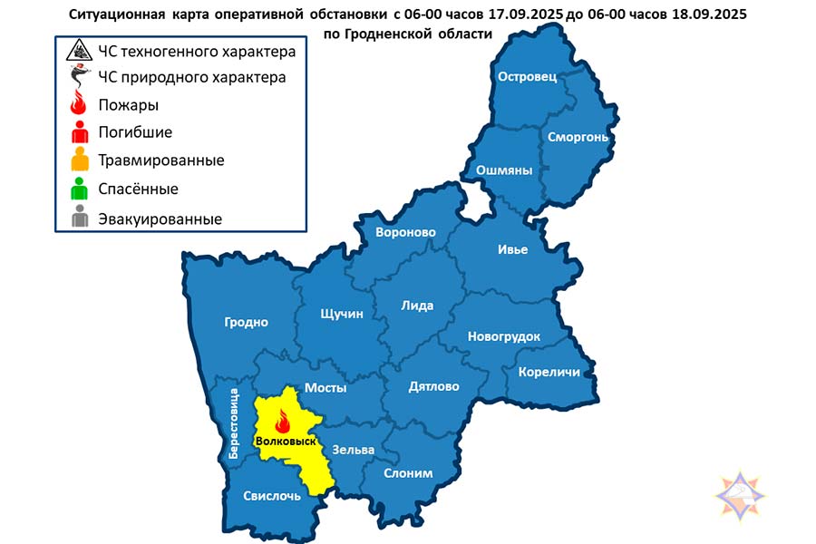 За сутки подразделениями МЧС области совершено 40 выездов, из них: 1 – пожар: Волковысский район – пожар жилого дома. Люди не пострадали.