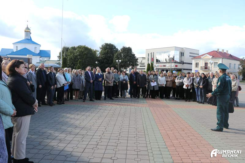 Единый день безопасности начался с учебной эвакуации. Практические отработки плана эвакуации при пожаре с участием работников МЧС прошли в учреждениях среднего образования. Пронзительный звук пожарной сигнализации раздался в этот день в детских садах, на предприятиях и в организациях района. В экстренном порядке пришлось эвакуироваться работникам и посетителям райисполкома.