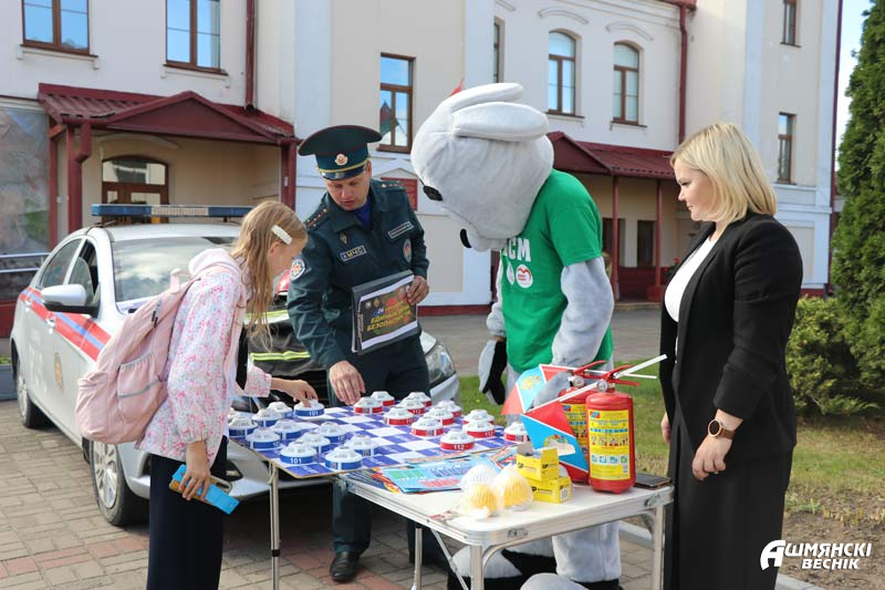 Дети лучше усваивают материал в игровой интерактивной форме. В этом убедились и волонтеры районной организации БРСМ из СШ №1, которые встречали ошмянцев в образах героев мультсериала «Спецотряд 112». С ними с большой охотой общались и взрослые, и дети – вместе находили правильный выход из чрезвычайных ситуаций, за активное участие в обсуждении вопросов безопасности получали памятки, даже фотографировались на память.