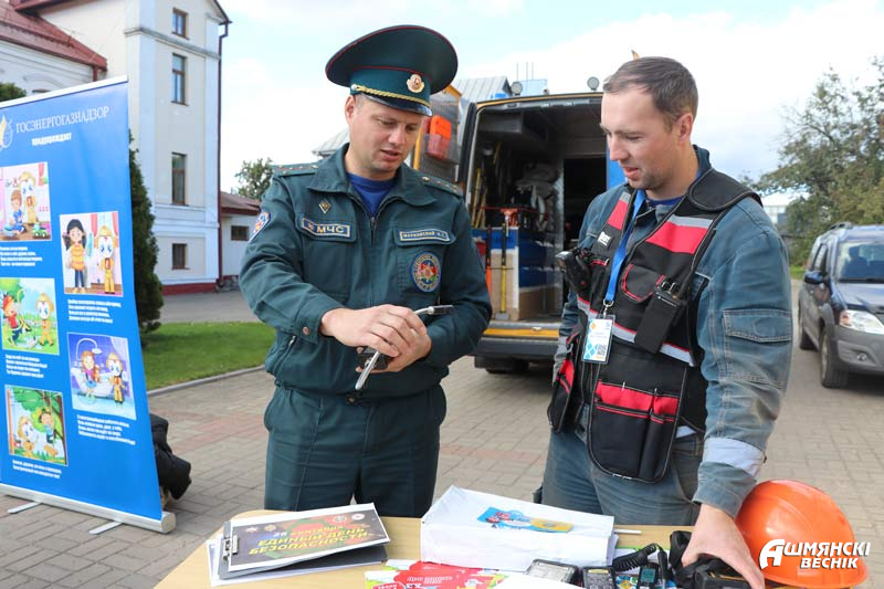 Было многолюдно в этот день и на площадке перед Ошмянским краеведческим музеем. Здесь «развернулись» районные службы и структуры: РОЧС, производственный участок БДПО, Ошмянский район газоснабжения, районная организация Белорусского Красного Креста и Ошмянская энергогазинспекция.