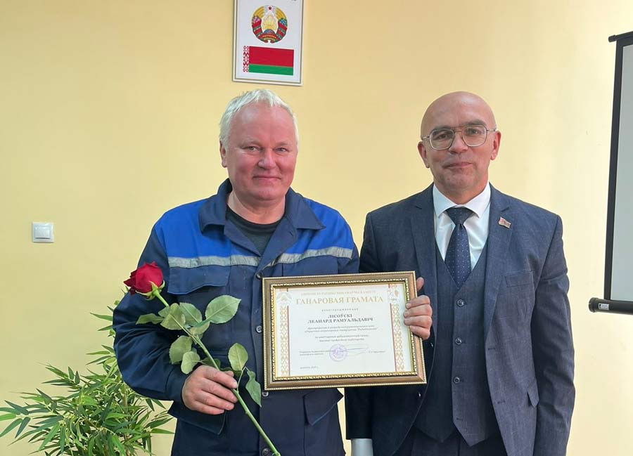 Слова благодарности за плодотворный труд принимали на торжественном мероприятии литейщик пластмасс Елена Клим и фрезеровщик Леонид Лисовский, награжденные Почетной грамотой Ошмянского районного исполнительного комитета. Поздравления в связи с награждением Благодарственным письмом председателя районного исполнительного комитета звучали в адрес литейщика пластмасс Зои Граблевской и бухгалтера Анастасии Миганович. Заслуженную награду – Почетную грамоту районного Совета депутатов – получил инженер-конструктор Владимир Ярошевич. Благодарственным письмом председателя районного Совета депутатов награждена контролер ОТК Оксана Гринберг.