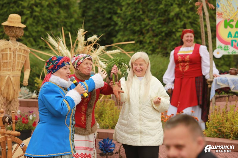 З’явіліся на сцэне і вяскоўцы. Дзве гаспадыні запрасілі гасцей да ўдзелу ў сельскагаспдарчай эстафеце. Пад дружныя апладысменты ўдзельнікі спаборніцтва спраўляліся з няпростымі заданнямі. У канцы кожнага чакала заслужаная ўзнагарода. Асабліва ўзнёсла і ўрачыста гучалі народныя песні. Многія не маглі заставацца на месцы і прыняліся танцаваць. Супрацоўнікі культуры, у сваю чаргу, запрашалі гасцей быць дынамічнымі і актыўнымі.