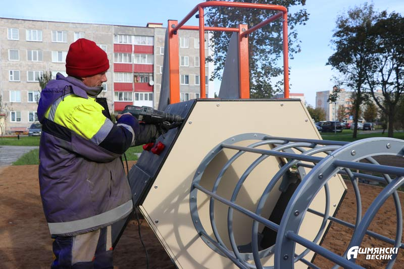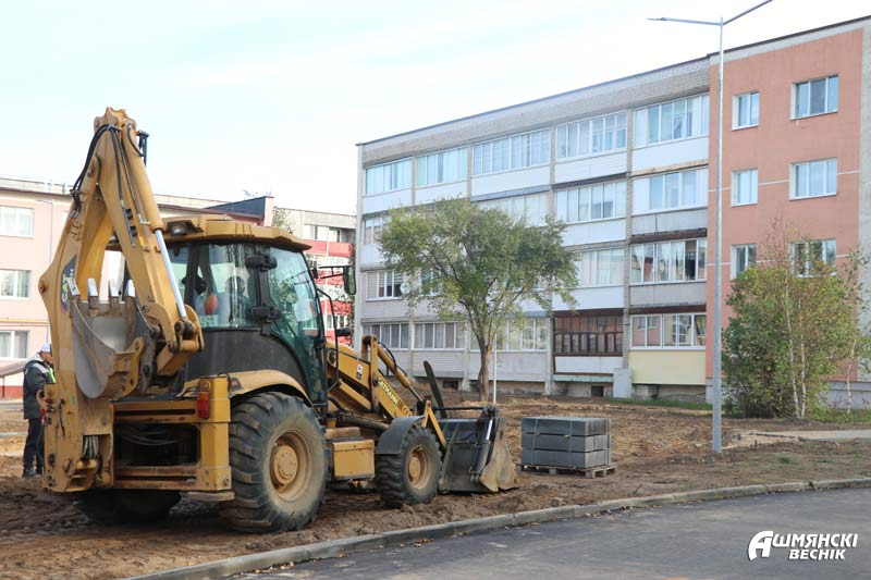 Заказчиком объекта выступает Ошмянское РУП ЖКХ, генеральным подрядчиком – филиал ДСУ № 28 дорожно-строительного треста № 6. Согласно проекту по модернизации идут к завершению работы по асфальтированию новых проездов, парковок для автомобилей и разворотных площадок. Также завершается укладка тротуарной плитки на площади около двух тысяч квадратных метров. Работы на этом объекте вошли в активную фазу. Рабочие устанавливают бордюры и монтируют современные детские площадки с малыми архитектурными формами. Их будет две – для разных возрастных категорий детей. С радостью восприняли юные жильцы вышеназванных домов новость о том, что в их дворе появится еще и спортивная площадка.