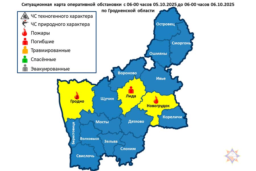 За сутки подразделениями МЧС области совершено 24 выезда, из них: 3 – пожара: Гродненский район – пожар гаража; Новогрудский район – пожар жилого дома; г. Гродно – пожар входной двери. В учреждении здравоохранения скончался 1 человек.