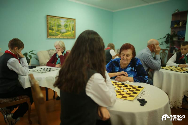 В Ошмянском районе состоялось районное первенство по шашкам среди граждан пожилого возраста и школьников «Бабушки и внуки». Турнир прошел в теплой, дружеской атмосфере и стал настоящим праздником общения и поддержки. Состязание собрало участников из разных уголков района – бабушек и дедушек, а также их внуков. Началось мероприятие с творческих номеров, которые подарили участники арт-студии «Нестареющие голоса». Порадовали зажигательными композициями и школьники. Преподаватели Ошмянской детской школы искусств сыграли несколько трогательных композиций. Перед началом соревнований к присутствующим обратился Станислав Решетин, участник турниров различного уровня по шахматам и шашкам. Судили соревнования представители Ошмянского районного физкультурно-спортивного клуба Петр Давидович и Надежда Шукелойть.