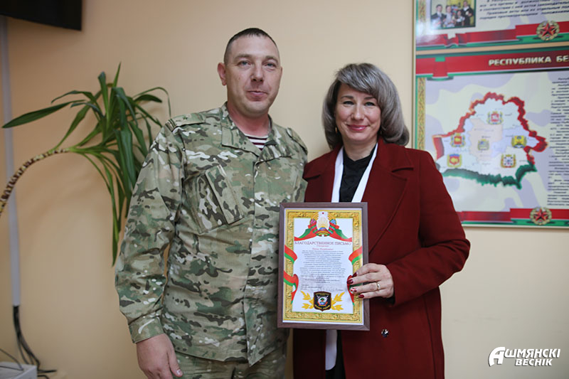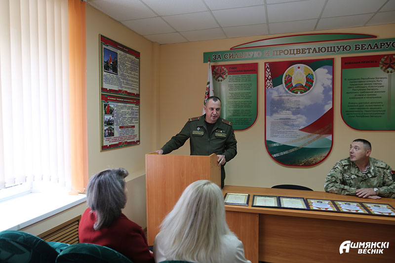 В День матери в военном комиссариате Ошмянского района состоялось чествование матерей солдат, проходящих срочную военную службу, которые добросовестно исполняют свой воинский долг. Благодарственные письма командиров воинских частей 7434 и 97106 были вручены шести мамам: Елене Михаленок, Янине Макарской, Ирине Пекарской, Наталье Савицкой, Ирине Кевра, Наталье Юргилевич. Их сыновья в настоящее время достойно исполняют свой конституционный долг по защите нашей Родины, являются надеждой и опорой для командиров, а для сослуживцев — достойным примером для подражания.