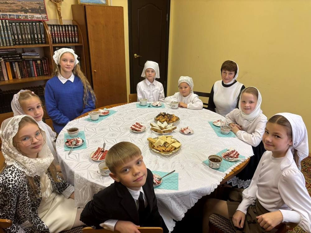 После официальной части мероприятия все были приглашены на душевное чаепитие. Стол, накрытый руками сестер сестричества и воспитанников воскресной школы, стал местом для теплого общения и обмена добрыми пожеланиями. Одна из мам, проявив заботу и талант, порадовала всех присутствующих своими фирменными тортами, добавив празднику еще больше домашнего уюта.