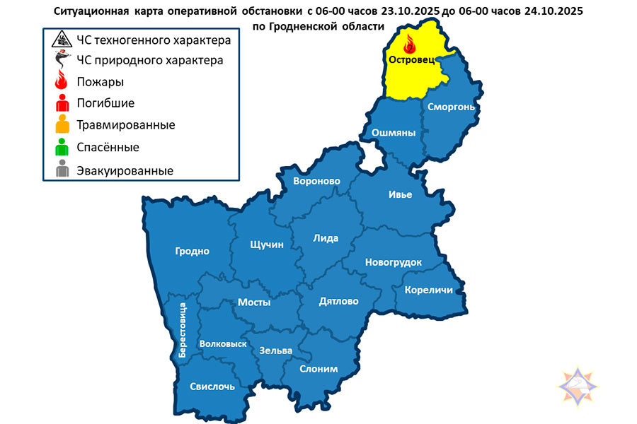 За сутки подразделениями МЧС области совершено 27 выездов, из них: 2 – пожара : Островецкий район – пожар жилого дома; Островецкий район – пожар легкового автомобиля. Люди не пострадали.