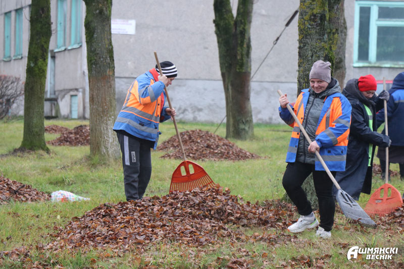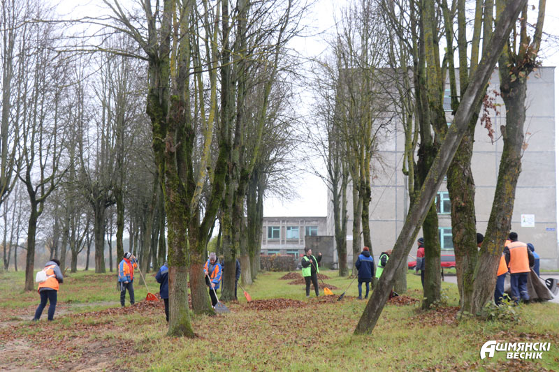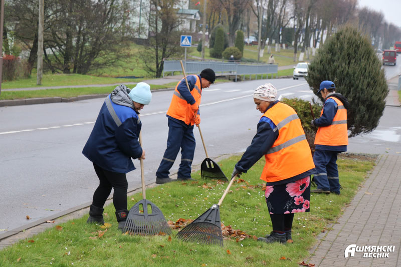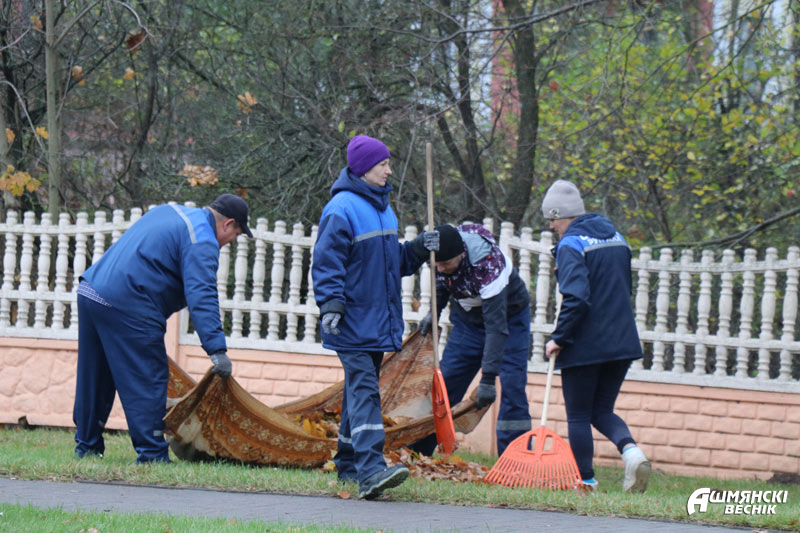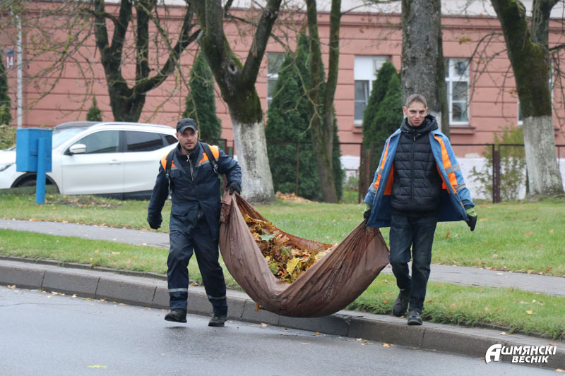 Работники жилищно-коммунального хозяйства работали на уборке улицы Советской. Они сгребают и вывозят опавшую листву на участке улицы от городского сквера на площади 17 Сентября до школы искусств. Ковер из желтых листьев укрыл территорию сквера и улиц буквально за одну ночь – после ночных заморозков деревья расстались со своим нарядом. После уборки сквер и улицы стали чистыми – совсем немного осталось до того момента, когда вся земля укроется пушистым снежным покрывалом.