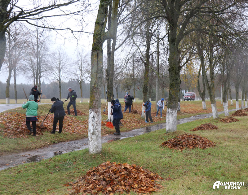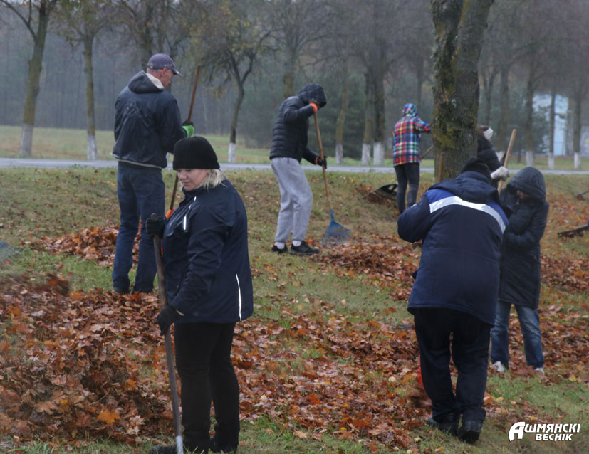 Дружно вышли на субботник работники сектора спорта и туризма Ошмянского райисполкома, районного физкультурно-спортивного клуба, детско-юношеской спортивной школы имени А.С. Барбашинского», райкома ОО «БРСМ».
