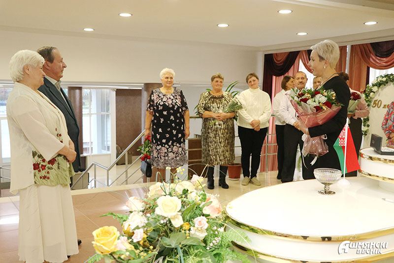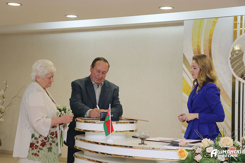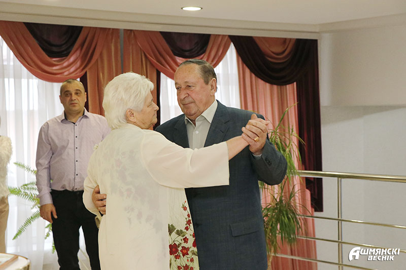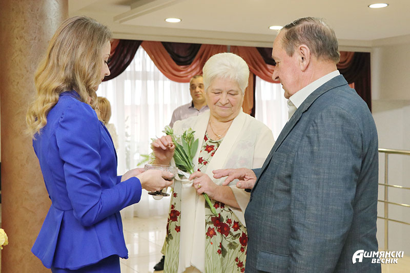 Не осталась незамеченной красивая дата и на уровне местных органов власти. Отделом ЗАГС Ошмянского райисполкома была организована церемония торжественной регистрации золотого юбилея. Поздравления и подарки принимали виновники торжества от профсоюзных организаций ОАО «Строитель» и ОАО «Ошмянский мясокомбинат», в которых когда-то трудились, районного совета ветеранов, отдела ЗАГС райисполкома, народного ансамбля народной песни «Жытніца» Краковского сельского Дома культуры.