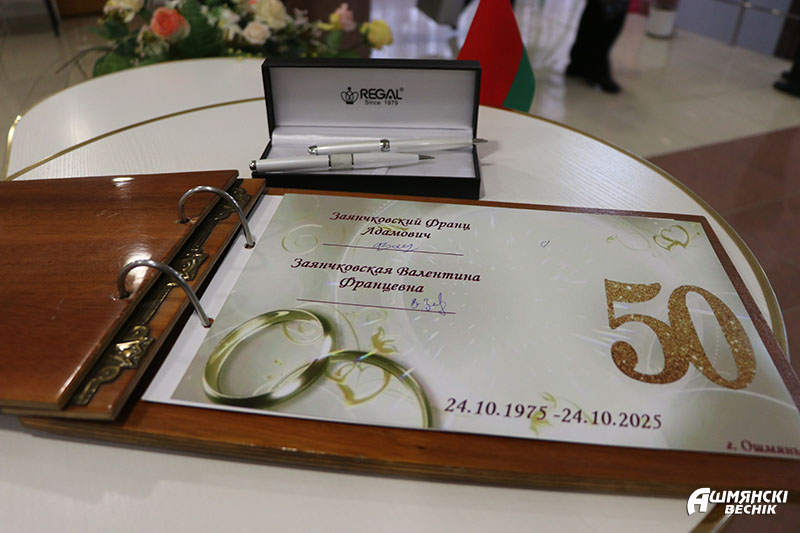 Свой прочный золотой союз Франц Адамович и Валентина Францевна скрепили подписями в Почетной книге юбиляров Ошмянского района, которая на протяжении многих лет ведется загсом, тем самым они вписали еще одну красивую страницу в историю как семейной летописи Заянчковских, так и Ошмянского района.