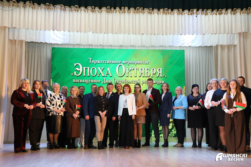— Глубокое осмысление собственного многовекового исторического опыта, уроков двадцатого века, Октябрьской революции и достижений мировой цивилизации будет и дальше способствовать обретению белорусским народом уверенности в своих силах и возможностях, помогать формированию идеологии национальной государственности. Современная Республика Беларусь уверенно идет собственным путем развития. Созидательный труд, уважение к истории, славным традициям и свершениям многих поколений – главные факторы консолидации белорусского общества, — подчеркнул, обращаясь к присутствующим, председатель Ошмянского районного Совета депутатов Юрий Карпович.