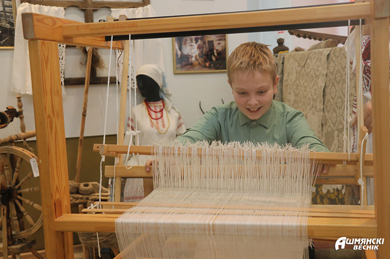 Аб тым, як ільняныя ніткі становяцца палатном, распавяла дзецям Валянціна Свірская. Майстар-клас па ткацтве на сапраўдным ткацкім станку прыйшоўся ўсім даспадобы. Дзеці навыперадкі імкнуліся сесці за кросны і зрабіць чароўны сцяжок.