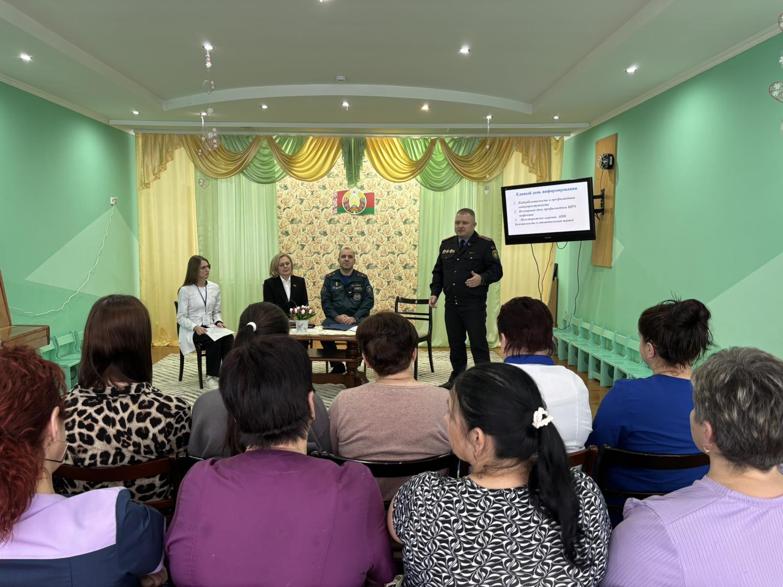 В единый день информирования состоялась также встреча информационно-пропагандистской группы с коллективом дошкольного центра развития ребенка г. Ошмяны. Заместитель начальника управления по труду, занятости и социальной защите Ошмянского райисполкома Ольга Кухаревич отметила, что темы, вынесенные на повестку дня, являются важными и актуальными.