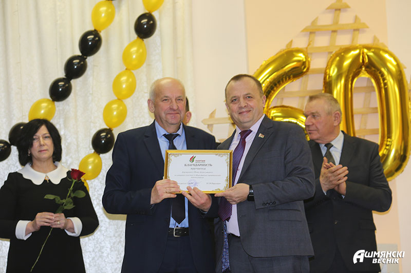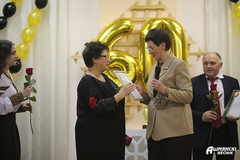 Ганна Амбражэвіч, намеснік начальніка ўпраўлення адукацыі, не толькі павіншавала з прыгожым юбілеем, але і ўручыла шэрагу педагогаў граматы. Лідары грамадскіх аб’яднанняў таксама падрыхтавалі падзячныя лісты. Падымаліся на сцэну і выпускнікі, якія скончылі школу шмат гадоў таму. Яны адзначалі, што за гэты час установа заўважна змянілася – стала больш утульнай, прыгожай і сучаснай.