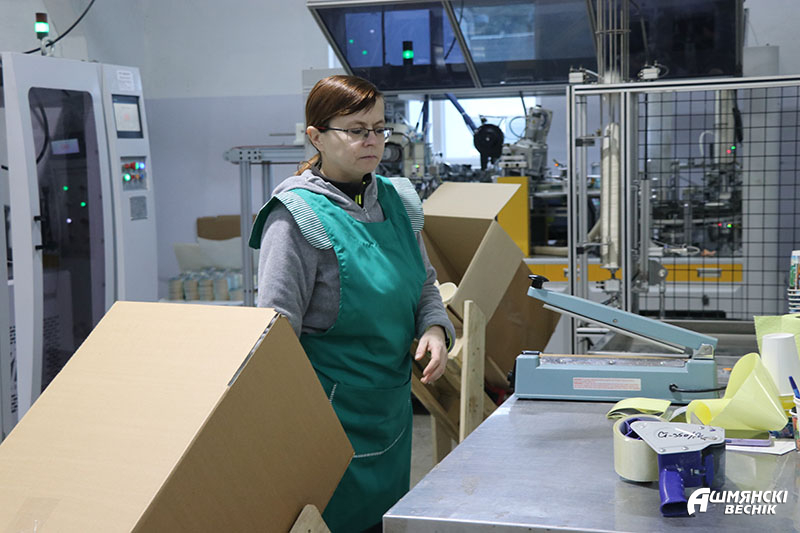 Автоматизированные линии работают слаженно и без сбоев. Продукция фасуется в бумажные короба и отправляется потребителю. Предприятием заключены договоры на поставку одноразовой посуды с крупными торговыми сетями и сетями автозаправочных станций. Продукция также пользуется спросом на объектах выездной торговли и кофе-пойнтах в магазинах. Бумажная посуда активно продается через интернет, с доставкой не только по Беларуси, но и в Россию.