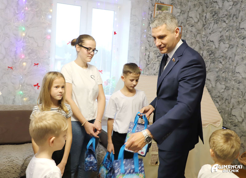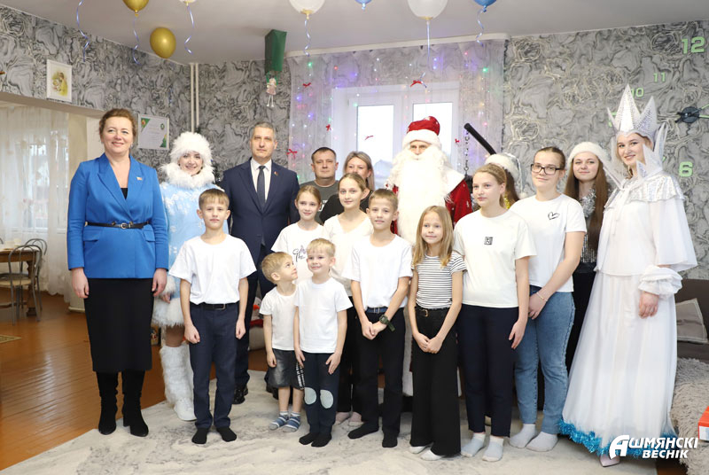 В канун новогодних праздников в числе первых принимали поздравления с праздником воспитанники домов семейного типа. Председатель Ошмянского райисполкома Владислав Гершгорин и начальник управления образования Светлана Барковская посетили семью Ольги и Павла Чернявских, в которой любви и заботе воспитывается одиннадцать детей.