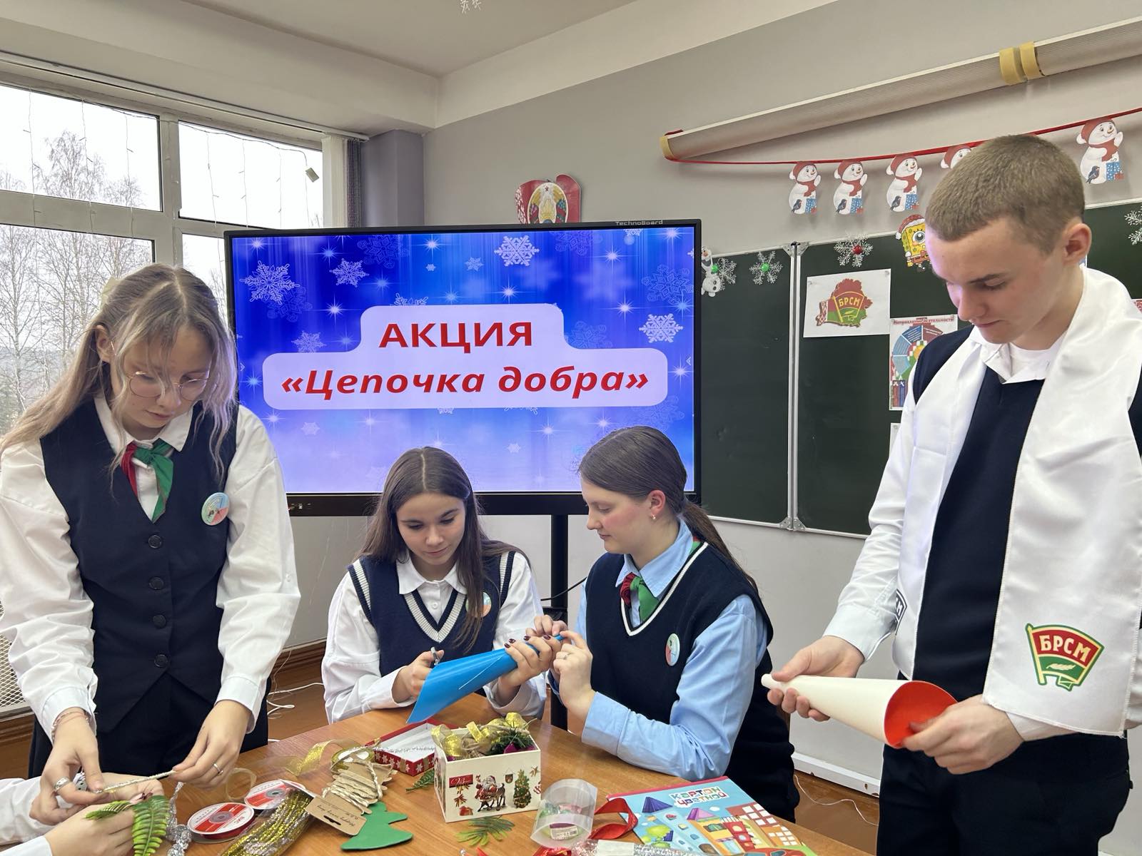 Присоединились к республиканской акции также школьники из СШ № 1 имени М.М. Гружевского и Жупранской школы. Они подготовили людям серебряного возраста елочки из конфет, а также небольшие настольные сувениры, которые подарят людям старшего возраста улыбку и хорошее настроение.