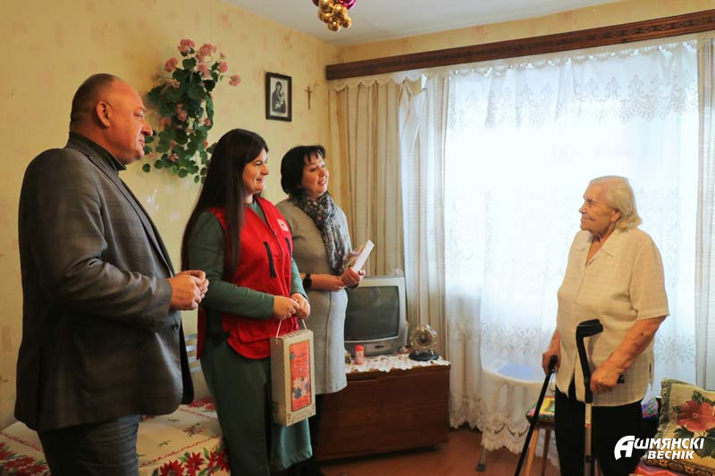 Председатель Ошмянской районной организации профсоюза работников образования и науки Алексей Дервис, председатель Ошмянского райкома профсоюза работников АПК Раиса Турлай, заведующий отделением дневного пребывания для граждан пожилого возраста территориального центра социального обслуживания населения Ошмянского района Анна Давидович, председатель Ошмянской районной организации Белорусского Красного Креста Алеся Карпович адресовали теплые слова, пожелания крепкого здоровья и благополучия именинницам, вручили им приятные подарки, поговорили о жизни и предложили помощь в решении возникающих трудностей.