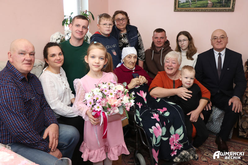 — Ваша жыццё – гэта сведчанне працавітасці, мужнасці і любові да роднай зямлі. Вы бачылі розныя эпохі, вы захавалі ў сэрцы святло дабрыні, мудрасці, веры ў чалавека. Ваш юбілей – гэта вялікая падзея для ўсяго раёна, бо вы з’яўляецеся сапраўдным захавальнікам традыцый і маральных арыенціраў. Знакавым з’яўляецца і той факт, што выпаў юбілей на Год беларускай жанчыны, — адзначыла ў сваім віншаванні намеснік старшыні райвыканкама Ганна Язель.