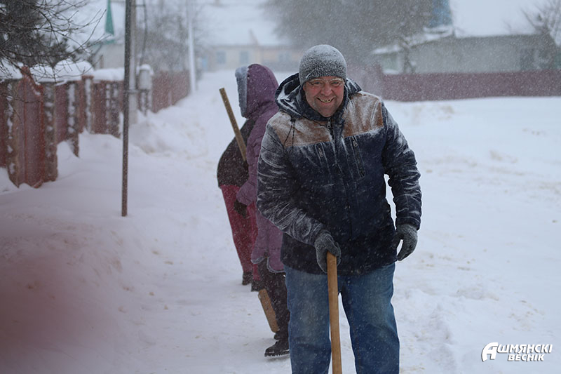 Одиноким пожилым людям, которым тяжело самостоятельно расчистить снег, на помощь приходит активная и деятельная молодежь. Активисты ОО «БРСМ» в рамках акции «Эстафета добра» помогают пожилым людям справиться с этой проблемой. К доброму делу подключились и военнослужащие Сморгонской пограничной группы, которые посетили отделение круглосуточного пребывания для граждан пожилого возраста и инвалидов в Жупранах. Стражи границы не только вручили подарки, но и помогли убрать снег на территории возле учреждения.