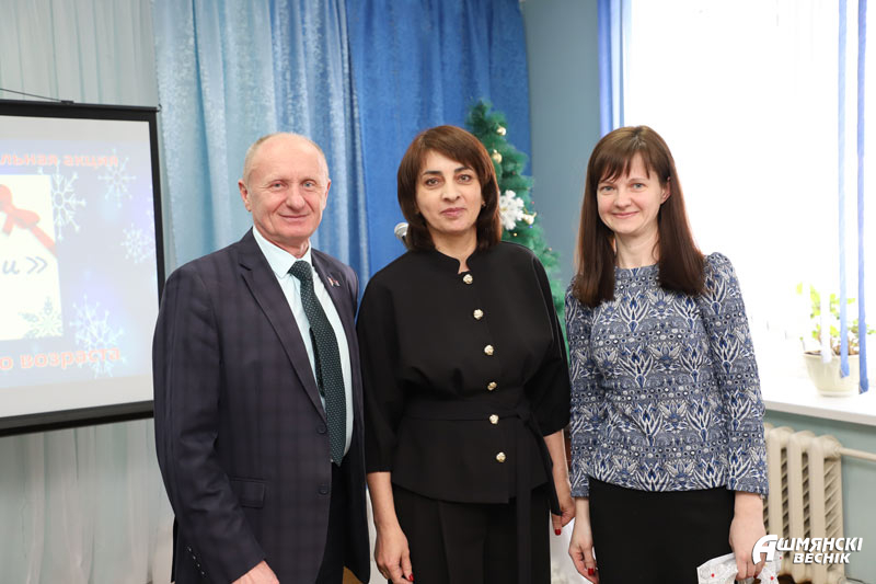 Высказать слова благодарности за труд и активную жизненную позицию, а также поздравить с прошедшими новогодними и рождественскими праздниками получателей услуг отделения пришли начальник управления по труду, занятости и социальной защите райисполкома Ирина Губарева, заместитель директора территориального центра социального обслуживания населения Елена Венгерова, директор Гольшанского крахмального завода Сергей Чудиловский, представители суда Ошмянского района Екатерина Окушко и Маргарита Чичиткевич.
