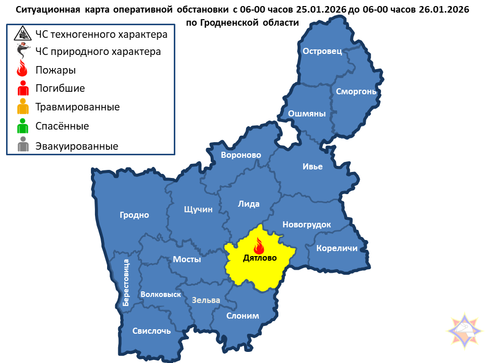 За сутки подразделениями МЧС области совершено 23 выезда, из них: 1 – на пожар: Дятловский район – пожар хозяйственной постройки. Люди не пострадали.
