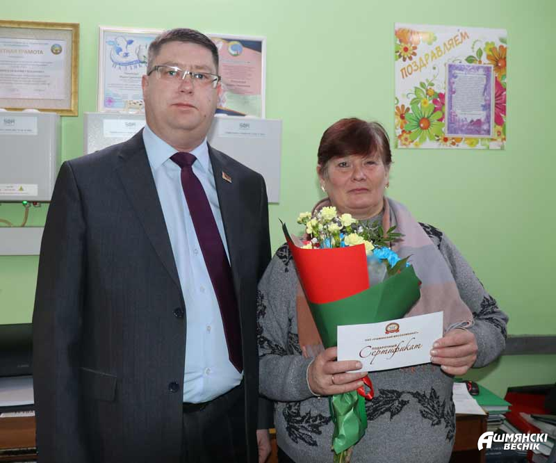 На комплекс приехали первый заместитель председателя Ошмянского райисполкома Андрей Янюк, председатель райкома профсоюза работников АПК Раиса Турлай, руководитель СУП «АгроМолРай» Эдуард Артемов. Поздравления принимали телятницы МТК «Войшнаришки» Наталья Бернатович и Инга Тедорадзе-Бернатович и телятницы МТФ «Гравжишки» Елена Кузьма и Анна Гируть.