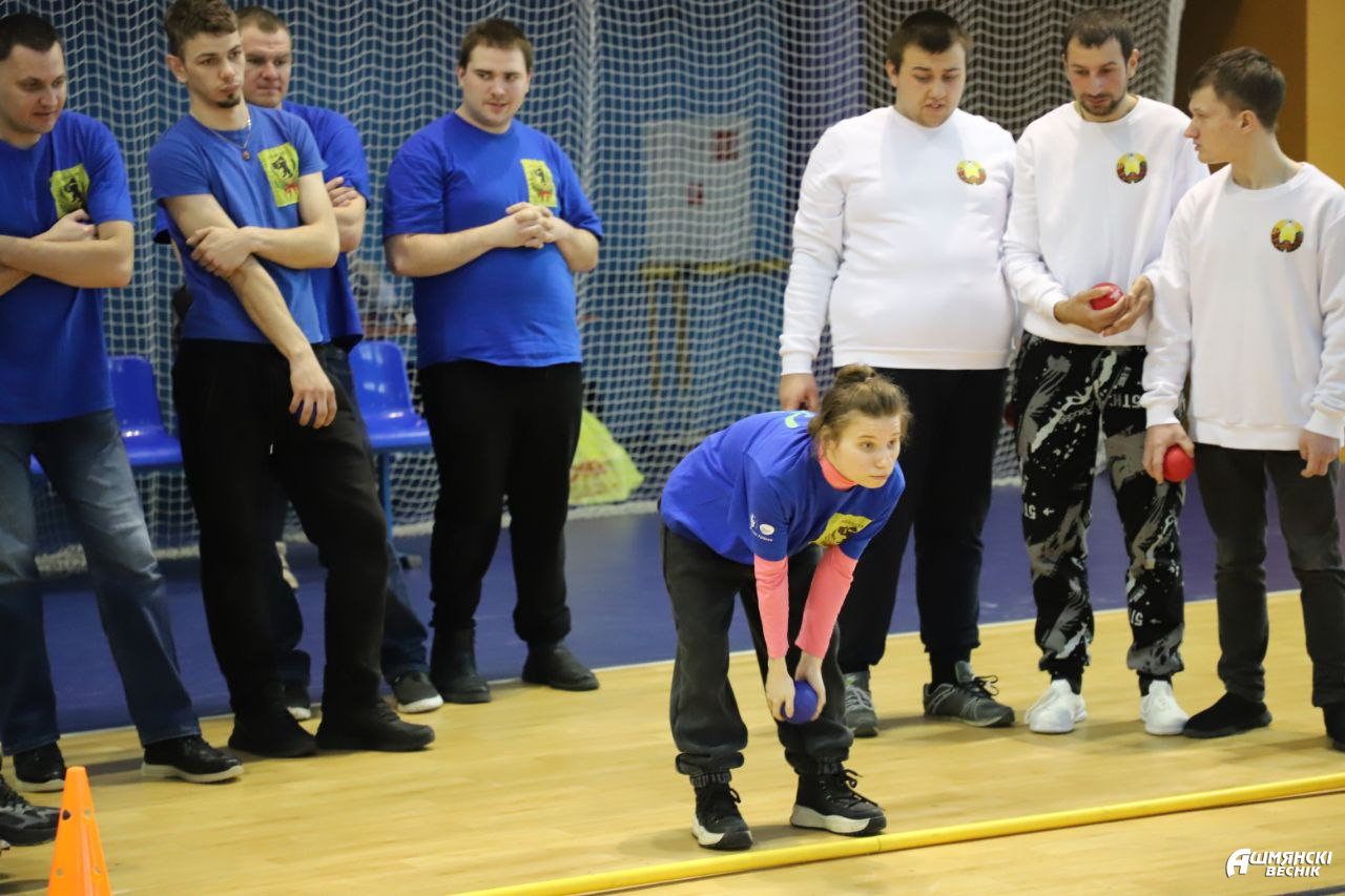 6 февраля на базе Ошмянского физкультурно-оздоровительного комплекса прошли межрегиональные соревнования по бочча для людей с инвалидностью. Бочча – это игра с мячом, которая во многом схожа с боулингом. Эта игра является паралимпийским видом спорта. В этот раз соревнования собрали команды из Воложина, Ивья, Островца, Ошмян. Наш район представляли сразу две команды. В состав каждой вошли самые активные и ловкие спортсмены.