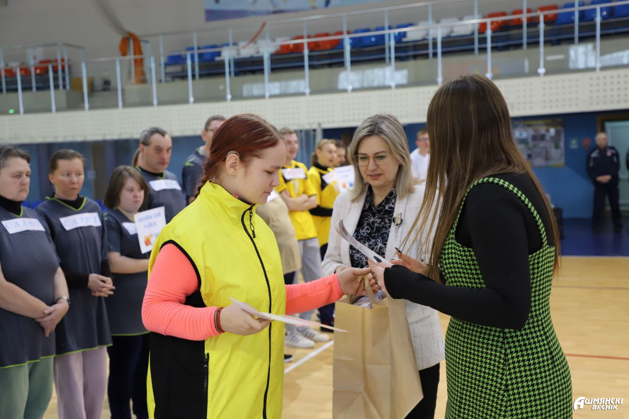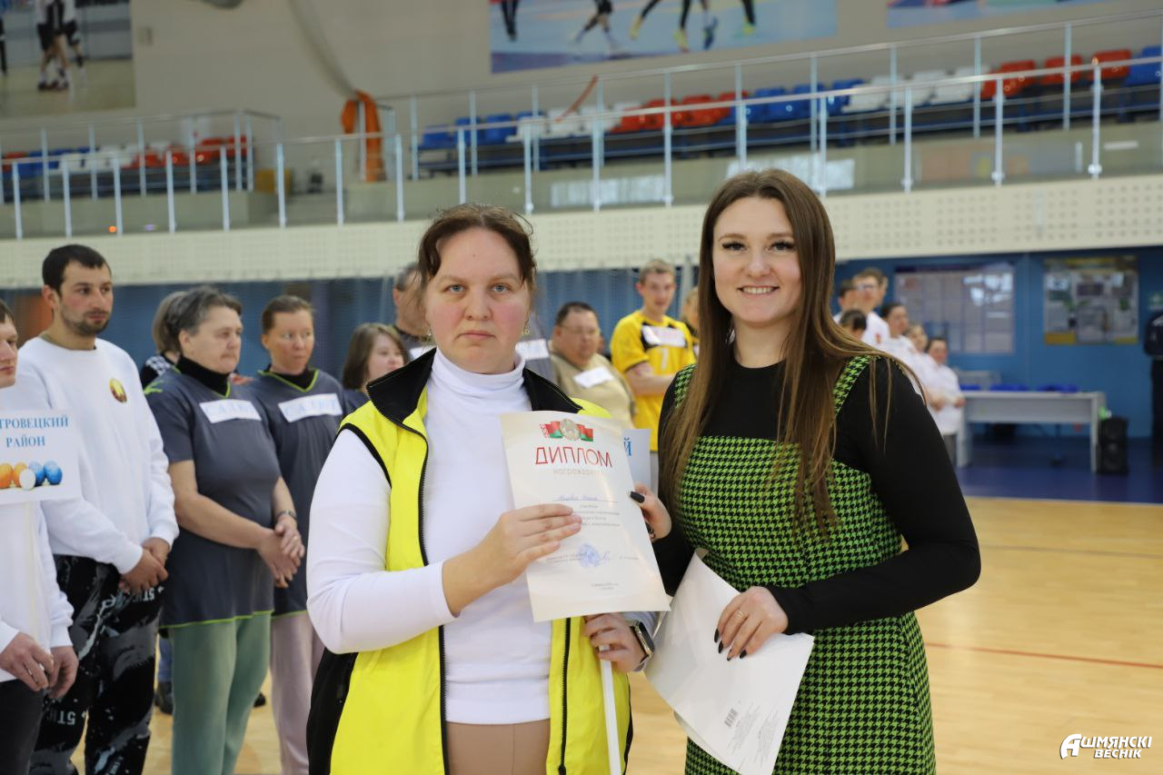 С большим нетерпением участники соревнований ждали подведения итогов. Перед началом награждения к спортсменам обратилась Жанна Шидловская, заведующий сектором спорта райисполкома. Она отметила хорошую подготовку спортсменов и уверенную игру. Наталья Тихонович, директор ТЦСОН Ошмянского района, подчеркнула, что проигравших в соревнованиях нет – все показали достойную и уверенную игру.