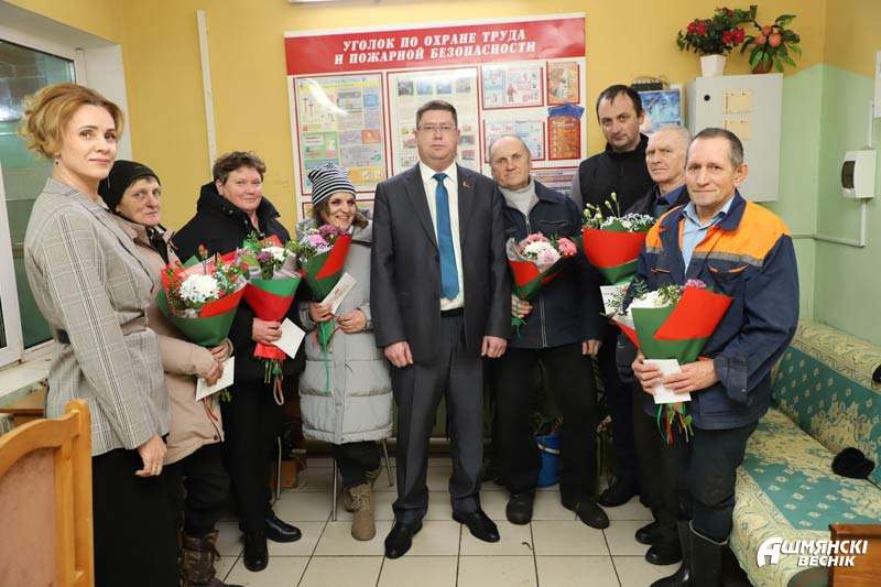 Поздравить передовиков приехал первый заместитель председателя райисполкома Андрей Янюк. В теплой обстановке он вручил заслуженные награды работникам хозяйства, которые самоотверженно трудятся и остаются верны выбранной профессии. За добросовестный труд и значительный вклад в развитие животноводства были награждены Валентина Сядковская, Виктор Болзан, Ирина Захаревская, Людмила Юшкевич, Александр Вишневский, Савелий Таганов.