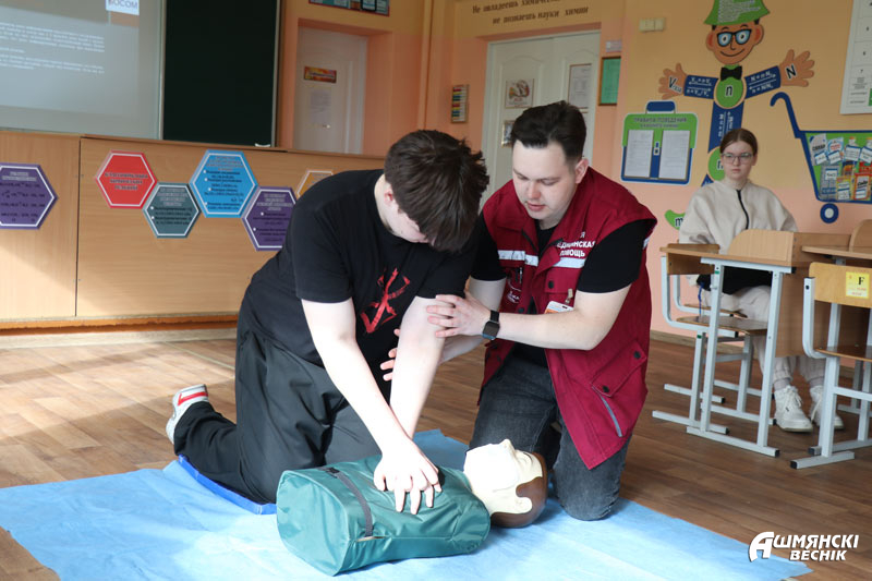 Первые занятия в Ошмянском районе прошли на базе гимназии № 1. С ребятами работали врачи-анестезиологи-реаниматологи Островецкой центральной районной клинической больницы Александр Сульжицкий и Виктория Бородина, фельдшер выездной бригады скорой медицинской помощи Максим Дорошкевич.