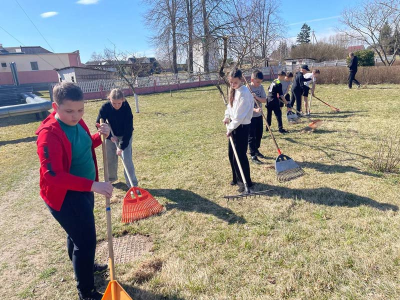 Во время трудовой акции работа нашлась для каждого: старшеклассники готовили школьный стадион к летним стартам и наводили порядок у памятных мест, учащиеся среднего звена очистили территорию от прошлогодней травы и мусора, малыши привели в порядок пешеходные дорожки. Не остались в стороне и взрослые, которые привели в порядок клумбы и побелили деревья.