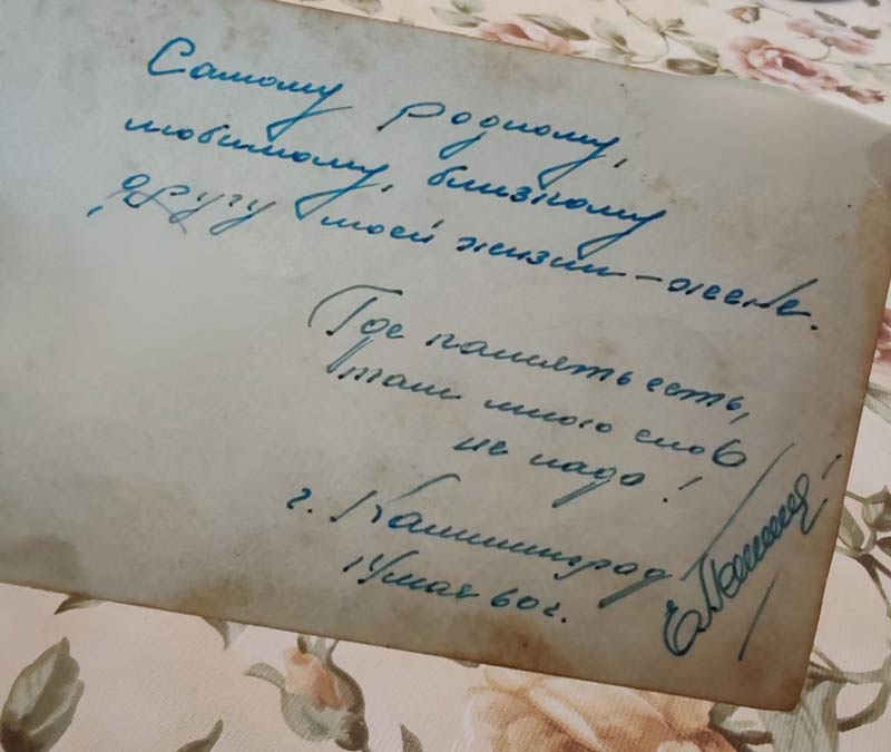Став взрослее, однажды по привычке заглянула внутрь комода, а там снова они — коробки, в которых теми же ровными рядами лежали старые фотографии. В этот раз мы смотрели их вместе с дедушкой: первый снимок — он сам, красивый, статный, в военной форме, на другой — он вместе с армейским другом. Много лиц друзей, сослуживцев, родных и близких. Среди многочисленных фотографий я увидела снимок бабушки — юной, с открытым и добрым взглядом, — улыбка которой для дедушки была дороже всего на свете. А на оборотной стороне фотографии рукой бабушки было написано: «На долгую и незабываемую память мужу Евгению. Вспоминай обо мне, не пытайся забыть, о тебе я всегда вспоминаю. Оставь в сердце своем уголок для меня, для тебя я всегда оставляю». Дедушка пояснил, что тогда служил на военно-морском флоте в Калининграде, и разлука была долгой. Спасали только такие весточки. А затем дрожащей рукой протянул еще один снимок — его самого во время службы. Повернув фотографию, я прочла: «Самому родному, любимому, близкому другу моей жизни — жене. Где память есть, там много слов не надо». И дата — 14 мая 1960 года. Удивительная нежность этих слов поразила. Дедушка всегда был верен своему слову. Целых 50 лет они с бабушкой прошли рука об руку. И несмотря на трудные моменты жизни всегда ценили то, что имели, не жаловались, не роптали на судьбу, а просто жили днем, в котором было место счастью. Тихому, уютному, родному.