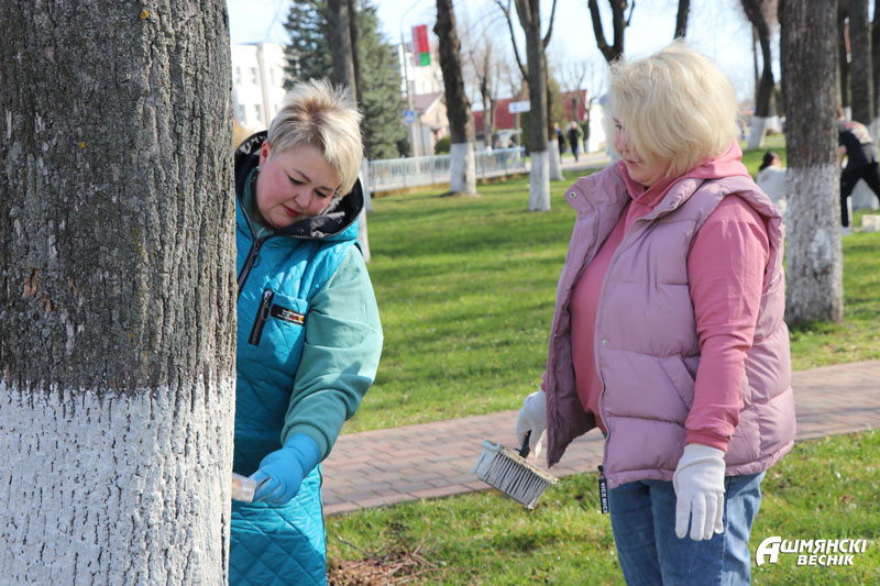 Активную работу по побелке деревьев и уборке территории в двух парках по улицам Голяса и Советской проводят Ошмянский филиал Гродненского областного потребительского общества и сектор культуры Ошмянского райисполкома вместе с работниками Ошмянского участка электросвязи РУП «Белтелеком».
