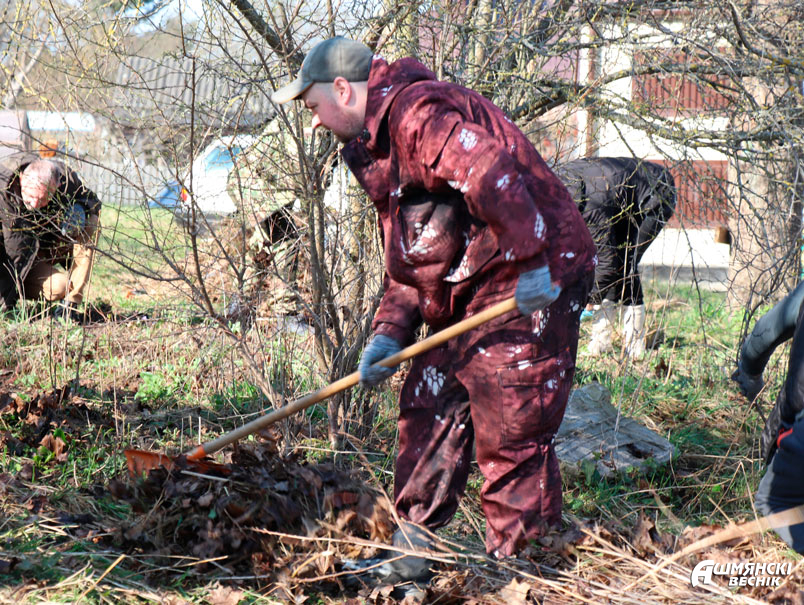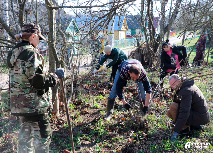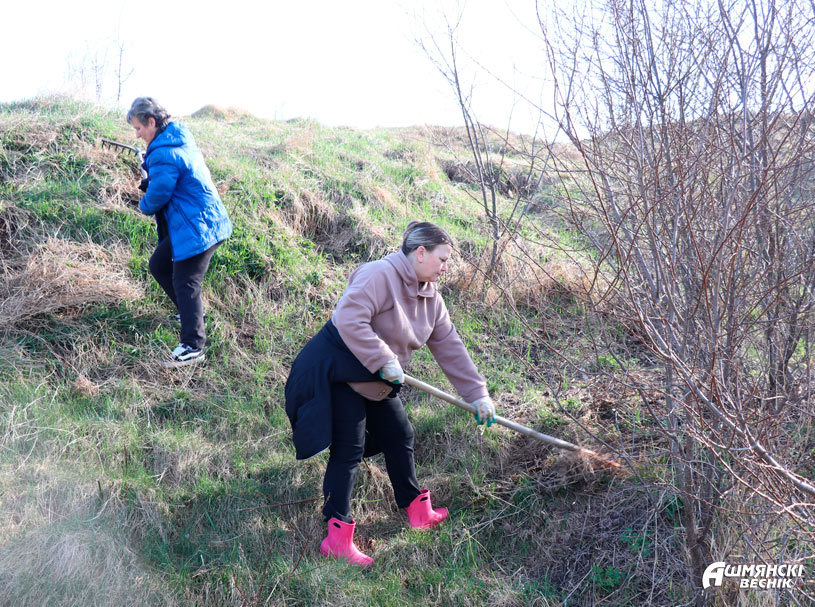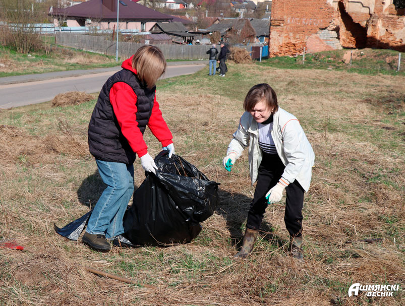 Работники сектора культуры, Ошмянской детской школы искусств, районной библиотеки наводили порядок на улице Франтишканской у руин костела.