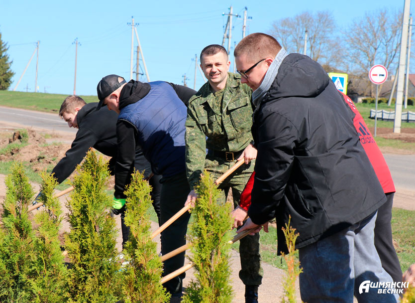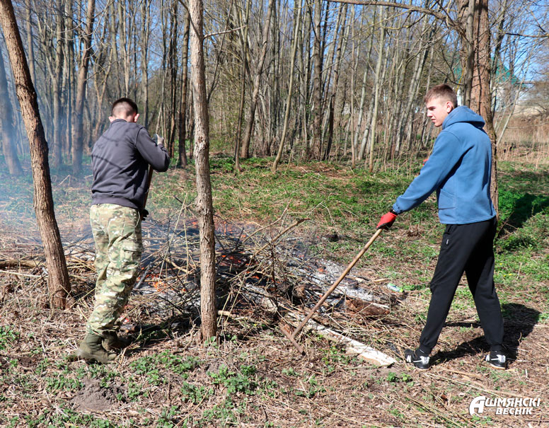 Сотрудники отделения охраны, военкомата, Следственного комитета, отдела судебных экспертиз трудились на уборке части улицы Франтишканской у пешеходного моста через Ошмянку.