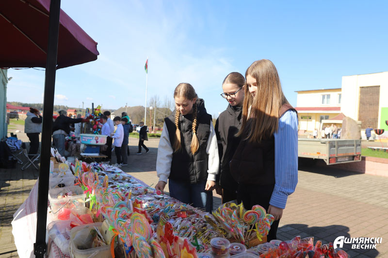 На площадке возле клуба была развернута выездная торговля. Юные участники и их родители могли угоститься сладкой ватой, конфетами, ароматным попкорном и другими лакомствами. Работники Ошмянского филиала Гродненского облпотребобщества организовали полноценную торговлю для тех, кто хотел подкрепиться основательно.