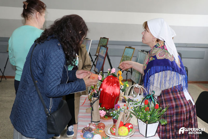 На выставках были представлены художественные работы учащихся Ошмянской детской школы искусств и персональная выставка работ Ирины Анохиной – посетительницы отделения реабилитации и абилитации инвалидов ТЦСОН. Привлекли внимание и пасхальные сувениры, изготовленные руками мастериц районного центра ремесел и традиционной культуры.