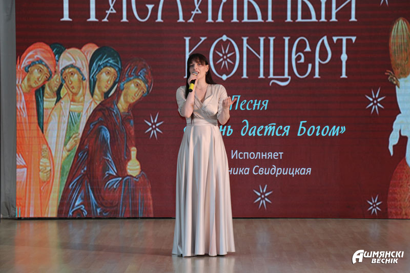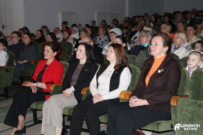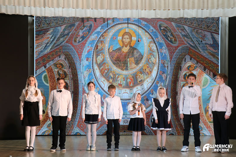 Программу торжественного концерта открыло выступление образцового хора «Созвучие» Ошмянской детской школы искусств под руководством Анны Буйко. Прозвучали вокальные номера в исполнении работников культуры Татьяны Черской и Светланы Ганусевич, Вероники Свидрицкой, Марины Познанской, юной вокалистки из СШ № 1 им. М.М. Гружевского Валерии Липницкой. Прозвучал дуэт скрипачей Ирины Осмольской и Татьяны Черской. Танцевальные композиции подарили участницы образцового театра танца «Эффект» СШ № 1 им. М.М. Гружевского, студии танца и фитнеса «Диана». До слез тронули зрителей яркие выступления чтецов Ульяны Яковлевой, Валентины Воронович, Ольги Семенюк. Завершилось мероприятие выступлением воспитанников воскресной школы прихода храма Воскресения Христова.
