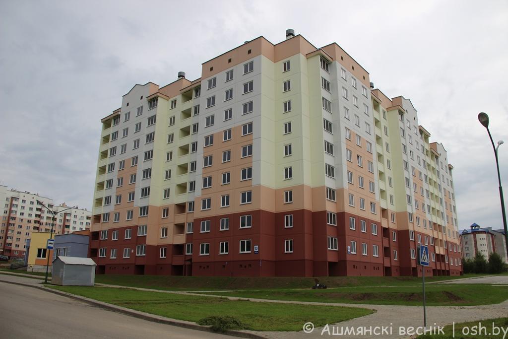 — По итогам прошлого года Ошмянский район занял второе место в области за достигнутые высокие показатели в строительстве и развитии отраслей строительной индустрии. За год в районе было возведено 226 квартир общей площадью 18930 кв. м. В текущем году из-за уменьшения финансирования по имеющимся государственным программам темпы строительства несколько снизились. Вместе с тем за первое полугодие введено в эксплуатацию 59 квартир общей площадью 5175 кв.м. В микрорайоне жилой застройки ул. Борунской сдан 40-квартирный жилой дом по государственному заказу. Сельскохозяйственными организациями построено два жилых 4-квартирных дома: в Кольчунах (СПК им. Клецкова) и Жупранах (СПК «Краковка»). В микрорайоне Западный ОАО «Гродножилстрой» завершил строительство 130-квартирного дома. Стать долгожданными новоселами в этом доме можно уже сегодня: квартиры выставлены на продажу.