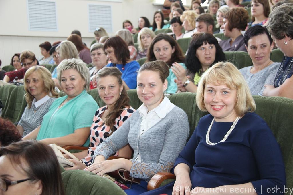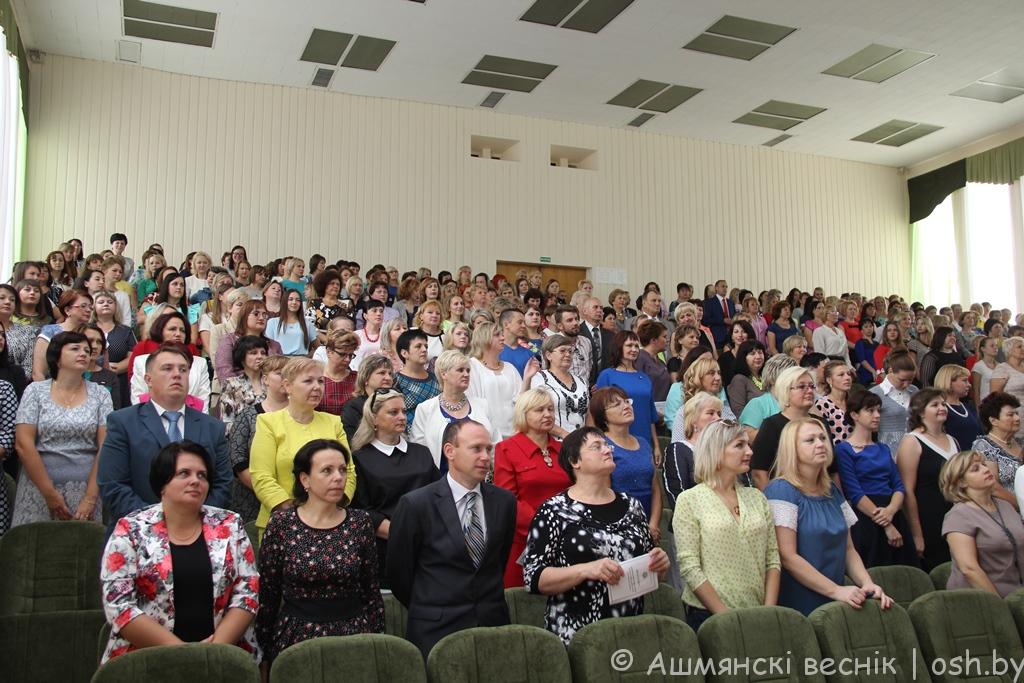 Жнівеньская нарада педагогаў з’яўляецца своеасаблівым аглядам дасягненняў сістэмы адукацыі раёна: педагагічных калектываў і асобна ўзятых выхавальнікаў і настаўнікаў. Размова на ёй, як правіла, вядзецца сур’ёзная, з глыбокім аналізам. Адначасова гэта мерапрыемства носіць святочны характар. Перад пачаткам педагагічнага форуму ўзнёслую атмасферу ствараў творчы калектыў настаўнікаў Ашмянскай дзіцячай школы мастацтваў. У зале віталі дружную педагагічную сям’ю Ашмяншчыны выхаванцы ясляў-сада №7, а таксама вучні школ горада. Віншаванні педагогі прымалі ад кіраўніка раёна Міраслава Сарасека, дэпутата Палаты прадстаўнікоў Нацыянальнага сходу Рэспублікі Беларусь пятага склікання Наталлі Кучынскай, кандыдата ў дэпутаты Палаты прадстаўнікоў Нацыянальнага сходу Рэспублікі Беларусь шостага склікання Аляксандра Маркевіча, маладых спецыялістаў Дзіяны Валадзько, Юліі Вінцкоўскай і Крысціны Шуман, першага сакратара РК БРСМ Вольгі Шыдлоўскай, намесніка начальніка ўпраўлення адукацыі Гродзенскага аблвыканкама Алега Рахунка.
