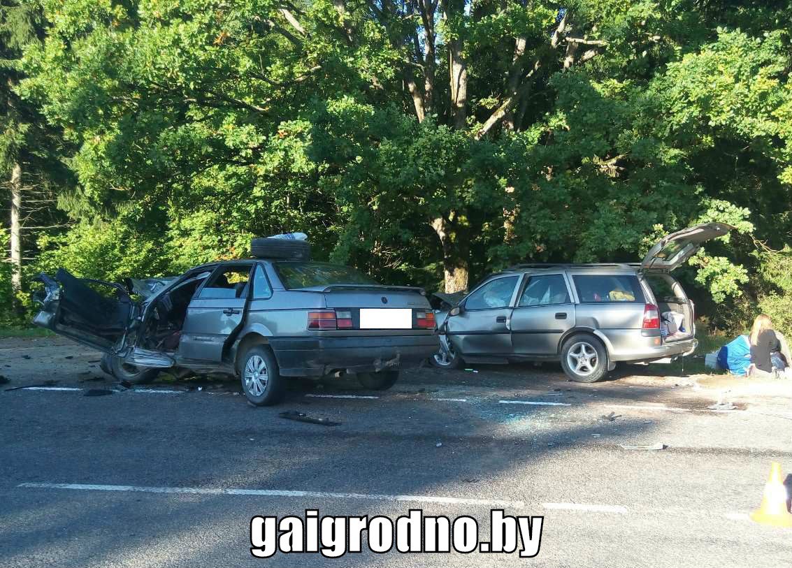 30 августа в Ошмянском районе вблизи деревни Людвиковщина столкнулись «Фольксваген» и «Опель»: водитель «Фольксвагена» выехал на полосу встречного движения.