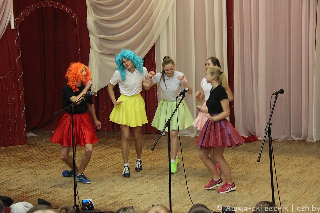 На сцене средней школы №1 на минувшей неделе собрались самые веселые и находчивые учащиеся Ошмянщины. В этом году показаться несерьезными не побоялись восемь команд, половину из которых выставила СШ №1. На суд жюри и взыскательных сверстников свои программы на конкурс «Фристайл» представили также СШ №2, гимназия, СШ №3 и Гольшанская средняя школа. Искрометные шутки чередовались с задорными песнями и хореографическими композициями, пародиями на телевизионные шоу и сцены школьной жизни.