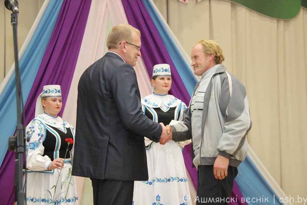 Собравшихся в зале сельчан поздравил с профессиональным праздником председатель Ошмянского райисполкома Мирослав Саросек. Он отметил вклад всех работников АПК Ошмянщины в трудовые результаты нынешнего года.