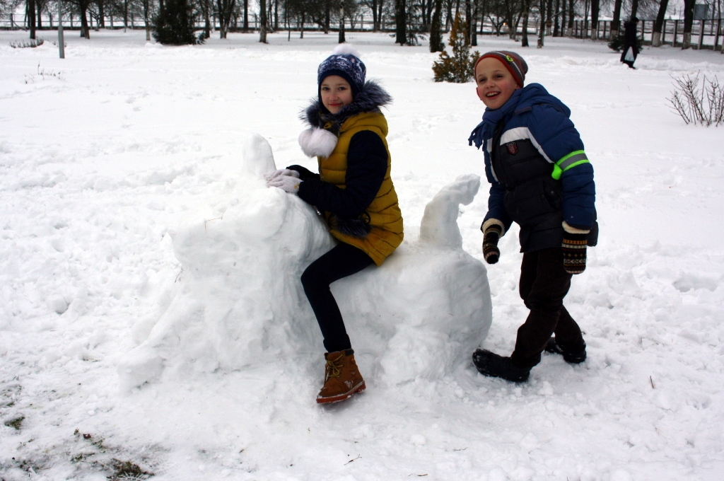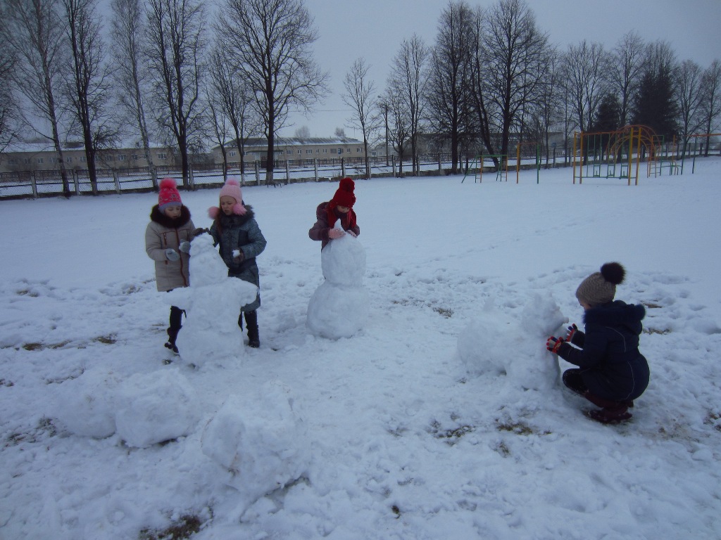 Сегодня, 21 января, в шестой школьный день во всех школах Гродненщины проходят увлекательные творческие соревнования на свежем воздухе. Снег стал основным «материалом» для участников конкурса. Детворе предложили вылепить снежные скульптуры в четырех номинациях: «Снеговик», «Сказочный герой», «Зверье мое», «Снежная избушка».