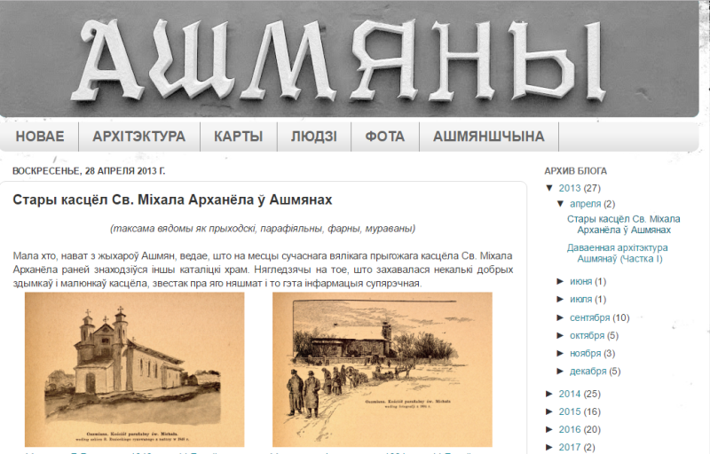 Сёння блог складаецца з некалькіх рубрык: “Новае”, “Архітэктура”, “Карты”, “Людзі”, “Фота” і “Ашмяншчына”. Інфармацыю для яго Павел ў асноўным выкарыстоўвае з інтэрнэт-рэсурсаў, але стараецца дапоўніць яе сваімі фотаздымкамі і малюнкамі. Павел упэўнены, што ў гісторыі горада яшчэ шмат белых плям, якія абавязкова патрэбна запоўніць.