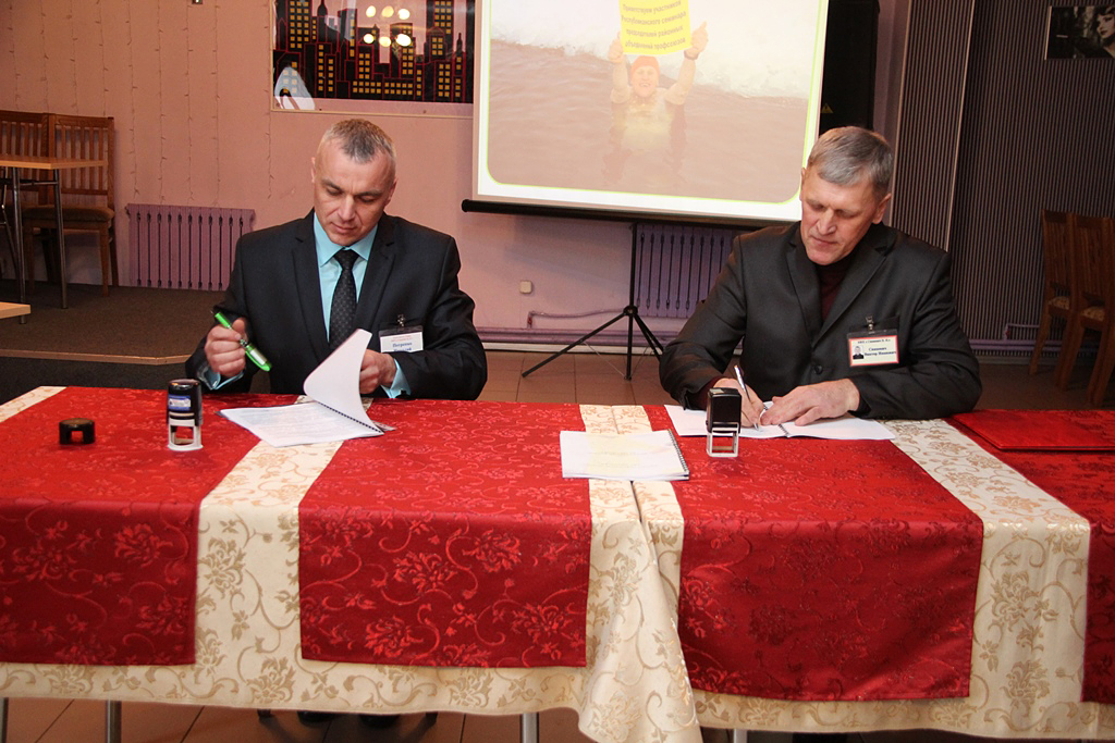 Представители делегации стали участниками подписания коллективного договора во вновь созданной первичной профсоюзной организации. В торжественной обстановке руководитель крестьянско-фермерского хозяйства Виктор Синкевич вместе с новоиспеченным председателем профкома Николаем Потрепко подписали «местную конституцию». Как отметили в профсоюзе, достойные условия для работы должны быть созданы на каждом предприятии, частные – не исключение. «Даже, если это небольшая организация, в которой работает всего 15 человек, люди должны чувствовать себя защищенным», отметили в профсоюзе.